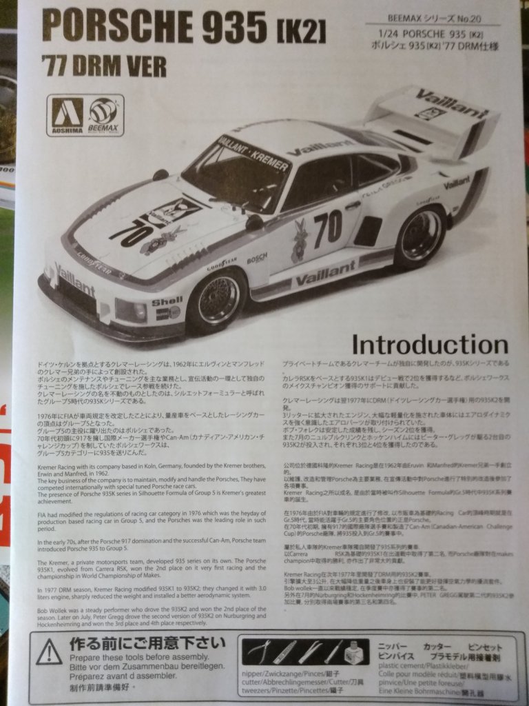 Популярный пост Егор Кр 518 Опубликовано 10 Oct 2018, 15:29:20 Популярный пост Жалоба Поделиться Опубликовано 10 Oct 2018, 15:29:20 Представляю обзор одного из последних китов от фирмы Beemax - Porsche 935 K2(1977 DRM Version). В России это вообще, насколько я знаю первый кит. Хотел бы поблагодарить за данное приобретение Александра Леонова (ToyGear) Для начала инструкция: Описание красок идет с номерами Ганзы и Тамии, что очень удобно. В самой инструкции сразу прописано использование травления. Очень удобно, что лист с нанесением декалей дан в цветном виде. Переходим к литникам: Кузов отлит очень качественно, даже швов практически нет. Большой литник с днищем, ванной салона, подвеской, тормозами и салоном. Детализация мне очень нравится. Из доработок нужно будет сделать только проводку. Литник с элементами аэродинамики и каркаса безопасности. Стыков прессформ практически не видно. Несколько небольших литников с мелочевкой. Только здесь нашел утяжины, но они легко устранимы. Остекление дано отдельными стеклами, очень прозрачные, качество хорошее. Очень понравились диски, хром качественный, смывать не придется. Аэродинамические накладки на диски выполнены очень круто, таких я еще не встречал у других производителей. А вот и ложка дегтя, резина у Бимакса как всегда не очень((( Отражатели неплохие. Декали даны в двух вариантах. Для белого авто №70 под управлением Петера Грегга, либо авто №51 голубо-зеленого непонятного цвета Боба Уоллека.( Для данного авто я заказал этот цвет у Александра) Также я приобрел сразу комплект фирменного фототравления. Качество меня полностью устраивает. Это одна из фишек Бимакса, к каждой модели они выпускают травло. Причем если на авто есть табачная реклама, то в основном наборе надписей Мальборо или Бастос нет, а в комплекте с травлением они обязательно приложены. Вроде все. Невообразимое желание собрать данную модель, но решил отложить ее до прихода краски и до окончания сборки хотя бы половины начатых китов))) 9 Ссылка на сообщение Поделиться на другие сайты