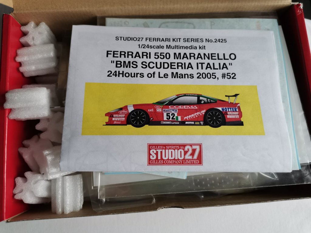 Популярный пост Егор Кр 518 Опубликовано 7 Jan 2021, 17:41:29 Популярный пост Жалоба Поделиться Опубликовано 7 Jan 2021, 17:41:29 Представляю обзор на смоляной кит от японской компании Studio27 Ferrari 550 Maranello команды "BMS Scuderia Italia" для 24 часов Ле Мана 2005 года(категория ГТ1). Судя по стикеру это официально лицензированная продукция. В гонке экипаж под номером 52 сошел, но в чемпионате Le Mans Enduranse Series автомобили команды заняли 1 и 2 место. На таком же феррари выступали представители России Николай Фоменко и Алексей Васильев из команды Russian Age Racing. Коробка стандартного размера для китов Studio27. Внутри коробки все плотно упаковано. Кузов из смолы очень хорошего качества. Единственное придется прорезать все отверстия, а тут их немало. Утяжин, сильного облоя и каких-либо артефактов я не заметил. Днище выполнено вместе с салоном, замечаний нет. Далее идет несколько деталей из смолы. Это панель приборов, центральная панель, пороги и панель под заднее стекло. Качество хорошее, геометрия лучше, чем у реджи и ренессанса. Колесные диски выполнены из металла. Качество не плохое. Резина требует доработки. В отдельном пакетике лежат оси и шурупы для крепежа днища. Далее идут детали из металла. Это детали салона, тормоза, спойлер, передняя губа и зеркала. Будет интересно поработать с ними. Опыта со смолой и металлом у меня еще нет. Далее дано остекление. Оно выполнено методом вакуумирования. Пока особых вопросов нет. А вот детали из прозрачной смолы не очень понравились. Но сборка покажет что к чему. Далее идет травление. К качеству вопросов нет. Декали. Качество так же не вызывает вопросов. Инструкция достаточно простая, краски даны без привязки к производителю, но с цветами и так примерно понятно. Вообще набор интересный, тем более аналогов в пластике нет. Только стоковая 550 у Фуджими. 18 Ссылка на сообщение Поделиться на другие сайты