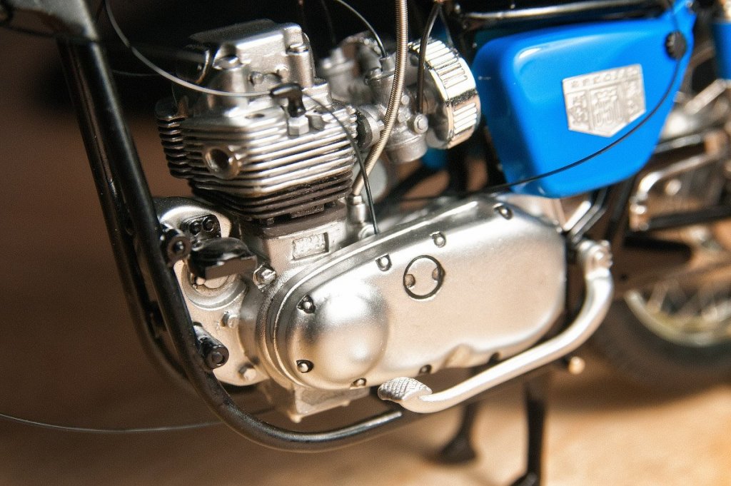 Популярный пост Николай_ 5834 Опубликовано 13 Jun 2022, 01:57:23 Автор Популярный пост Жалоба Поделиться Опубликовано 13 Jun 2022, 01:57:23 Доброе утро, страна! Праздники не прошли даром и в награду за отсутствие дачного участка и, как следствие, принудительных работ, был внезапно завершен очередной мотоцикл. Это моя третья модель из серии Gunze Sangyo, и, благодаря прокачке некоторых скиллов и посильному соблюдению аккуратности, стройка протекала довольно ровно и без яростного сопротивления со стороны отдельных элементов, с которым я столкнулся, собирая предыдущую Хонду. Предварительная сборка на сухую рамы, двигателя и задней вилки позволила выправить общую геометрию всей конструкции и устранить локальные искривления отдельных элементов, которые были незаметны без примерки. Основной проблемой остается перемещение собранной модели для фотосессии. Без последствий взяться решительно не за что — тяжелый, то что-то заляпаешь, то обломишь или погнешь. Пару раз заваливался болезный, сминая зеркала и подножки, как настоящий прям. Но вроде победил. Кстати, еле влез в зверинец, пришлось уши подрезать зеркала подгибать, самый большой оказался, конь. Всем большое спасибо за терпение, внимание, сочувствие и понимание. 18 Ссылка на сообщение Поделиться на другие сайты