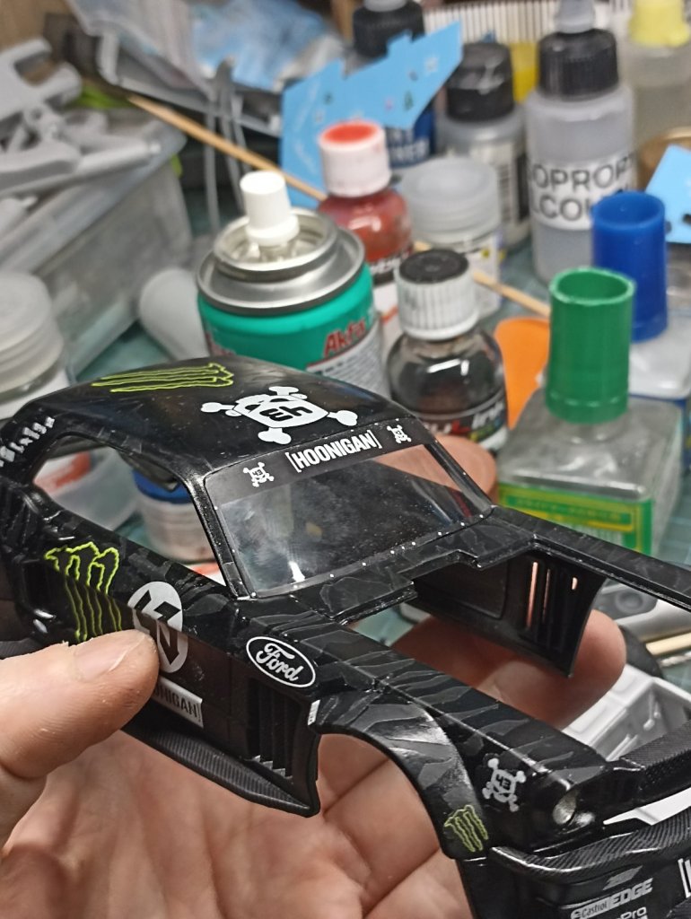 Да осталось совсем чуть-чуть, нужно наклеить кучу креплений GoPro, и добить лак на крышках капота и багажника. Ну и шильдики rtr на жабры не забыть добавить