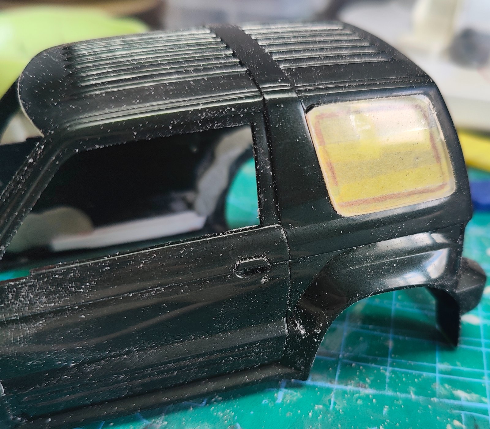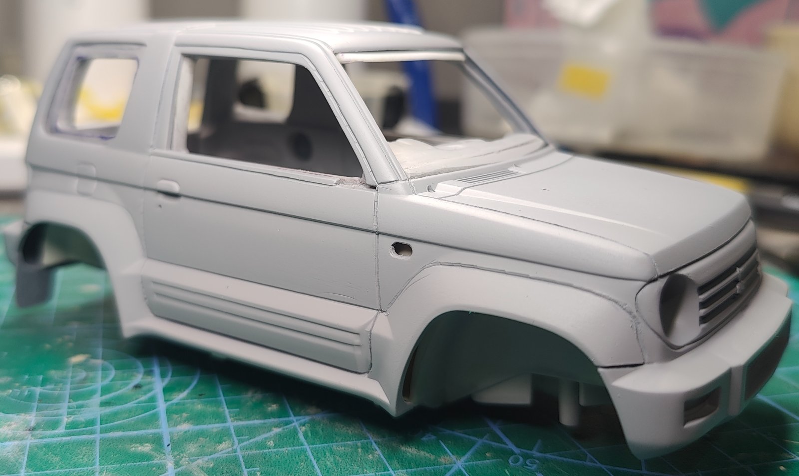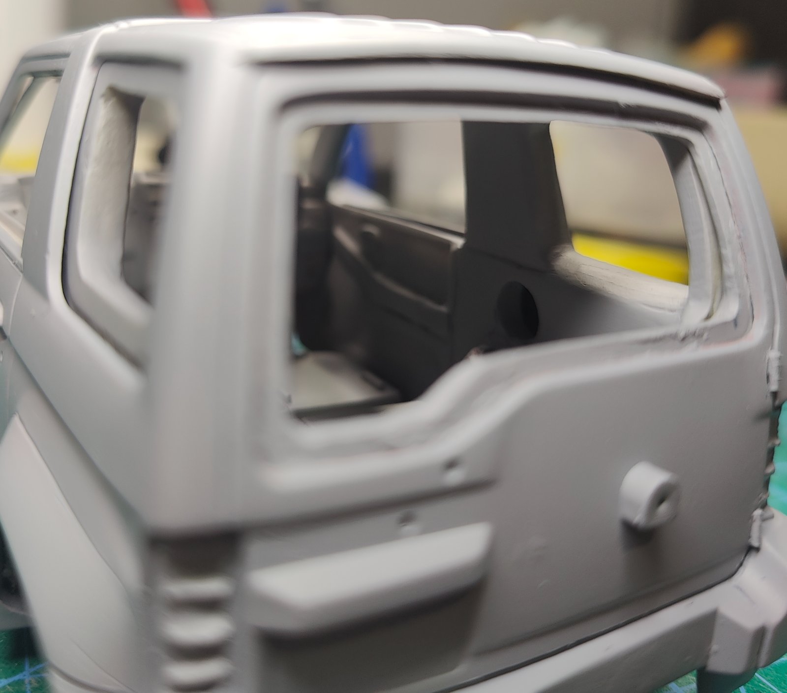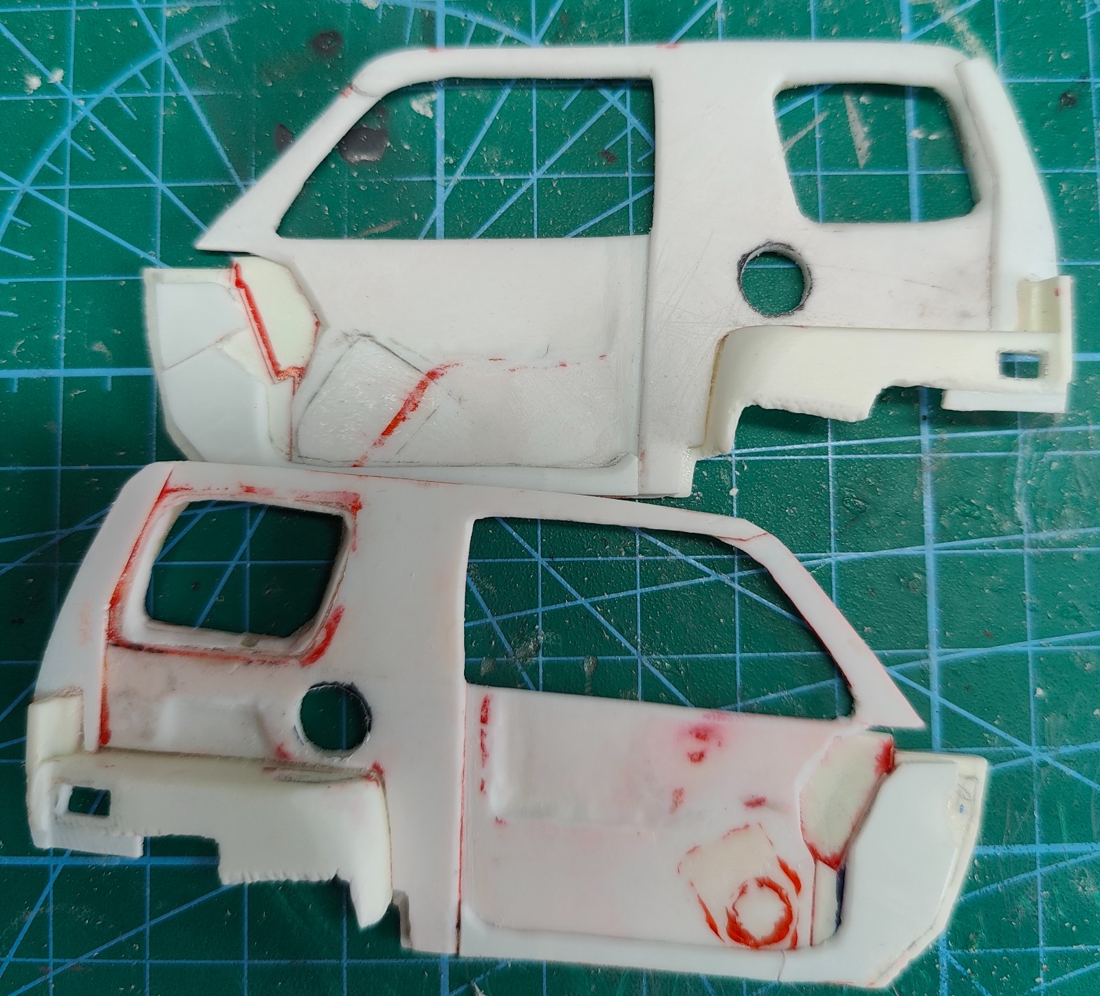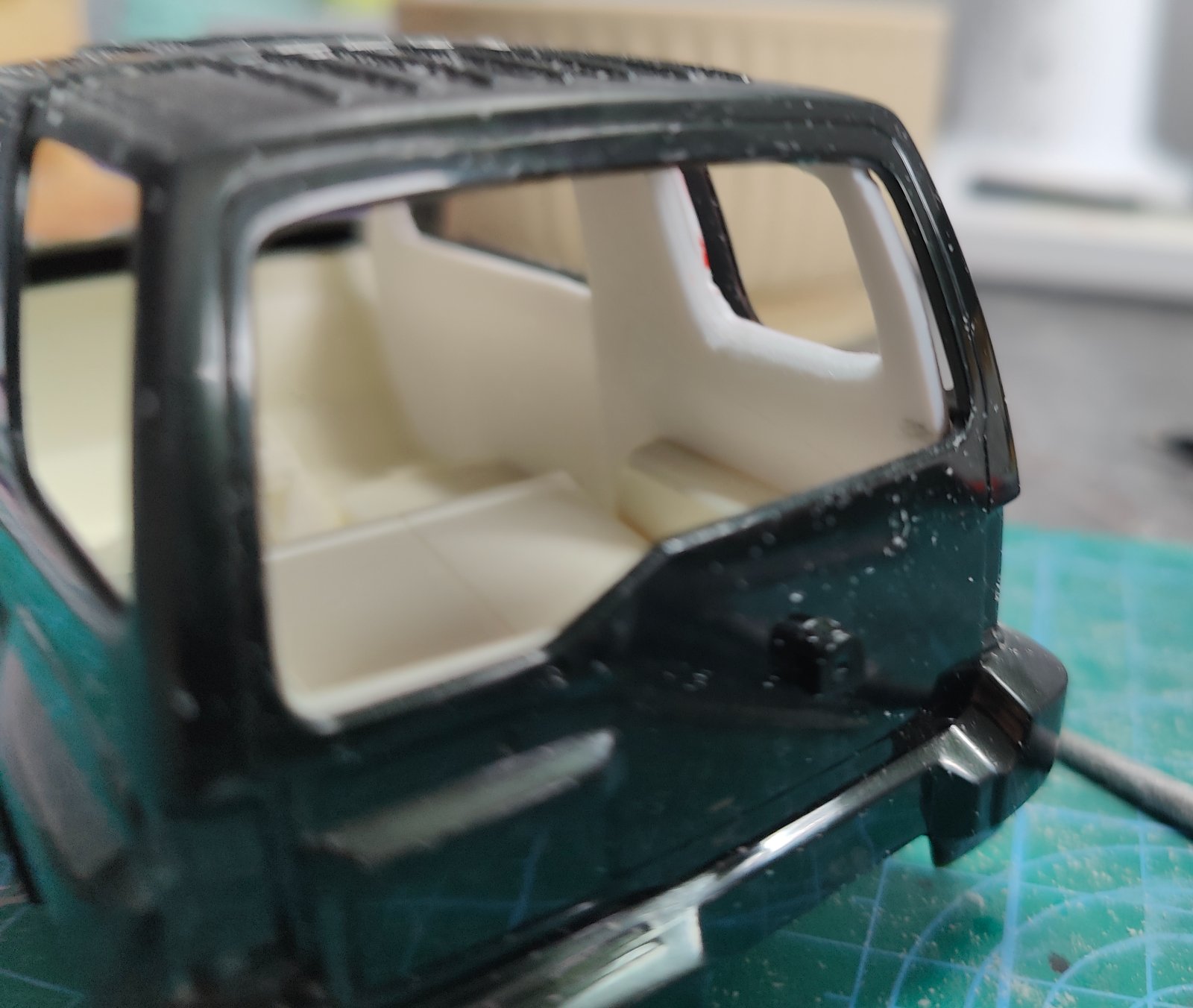 Популярный пост Delop 260 Опубликовано 3 May 2025, 16:24:06 Автор Популярный пост Жалоба Поделиться Опубликовано 3 May 2025, 16:24:06 (изменено) Доброго всем времени суток! Прогресс идёт медленно, но все же движется. Вырезал остекление и подогнал. С внутренней стороны кузова( задняя дверь) вклеил пластик и двухкомпонентной эпоксидкой и шапклевкой придал форму для дальнейшей стыковки с боковыми картами. Это все будет красится в цвет кузова, так как это по сути дверь. Единственное потом как то надо прямоугольник покрасить. Сделал потолок. Раз третий уже правлю дверные карты. Подгоняя размеры (сделал более ли менее похожими по пропорциям). Ручки открывания делал следующим образом Из куска пластика 3 мм вытачивал нужную форму с обеих сторон, потом вдоль разрезал на 2 части Так получилось в итоге Выпилил задние фонари, поворотники(глухие были), а так же лампочки отлитые вместе с кузовом Дальше приступил к расшивке. Расшивку я делал часов 5 не меньше. Ее тут оказалось очень много. Местами она отсутствовала, прорезал и добавлял. В процессе обнаружилось не соответствие, а именно отсутствие козырька над дверью багажника. Изготовил из листового пластика Сделал дверные петли С эпоксидки сделал секции фонарей В заключении нанес проявочный слой грунта. Дальше предстоит шпаклёвка, шлифовка, ну и краску салона как то подобрать. Общая картина на сегодня такая. Изменено 3 May 2025, 16:28:36 пользователем Delop 8 Ссылка на сообщение Поделиться на другие сайты