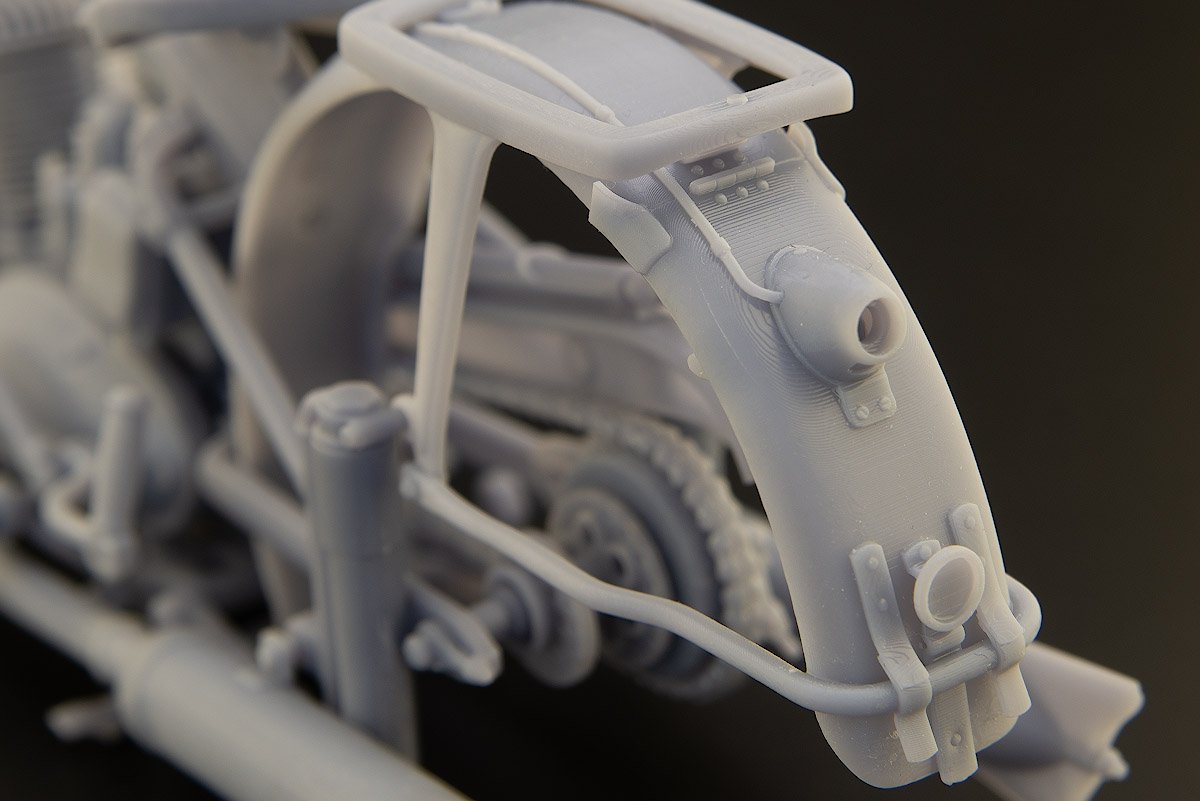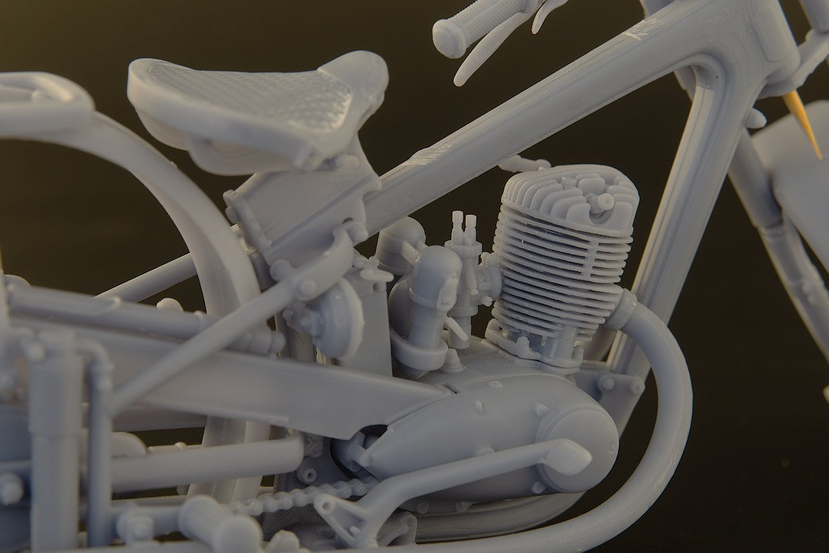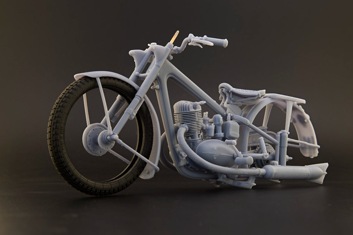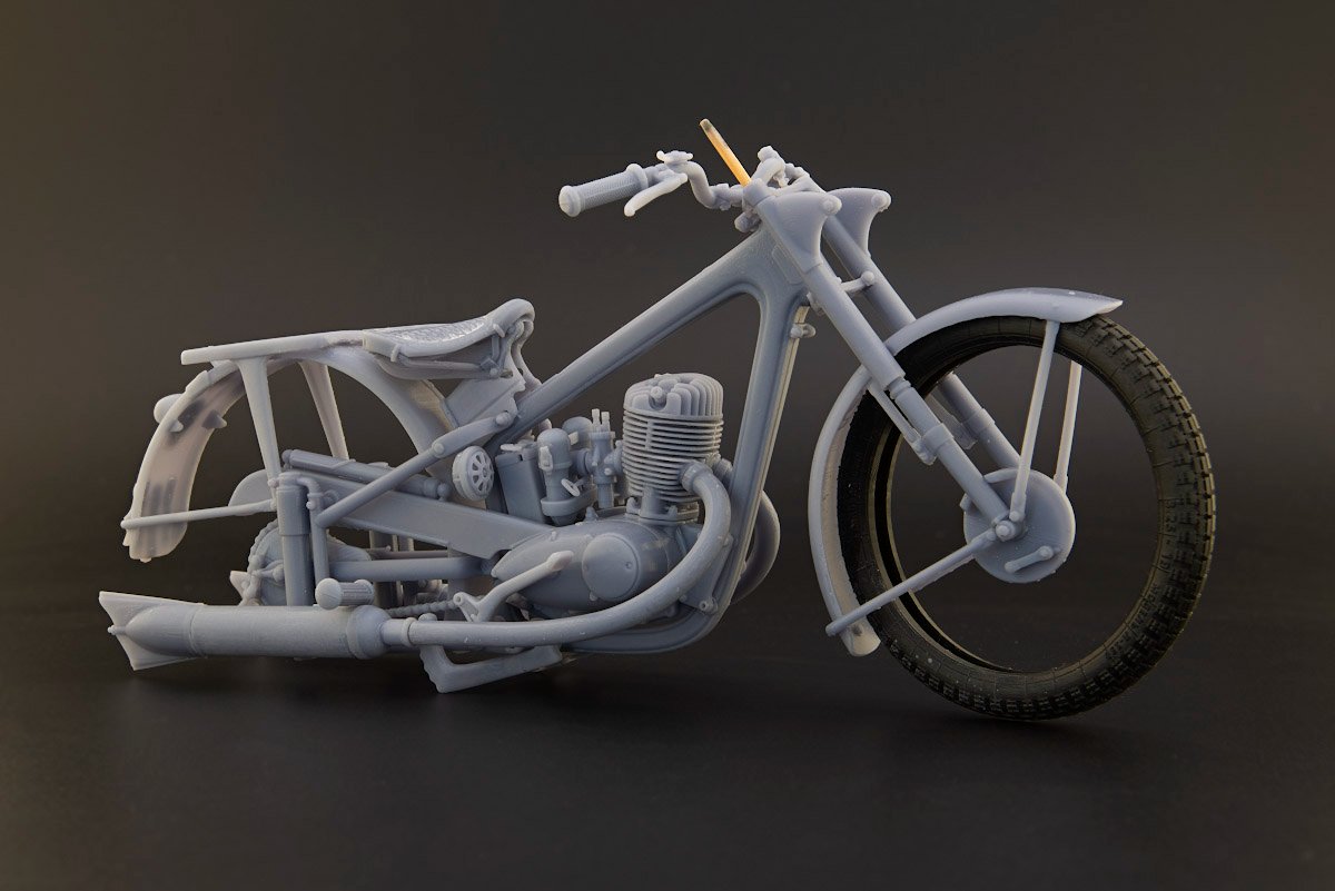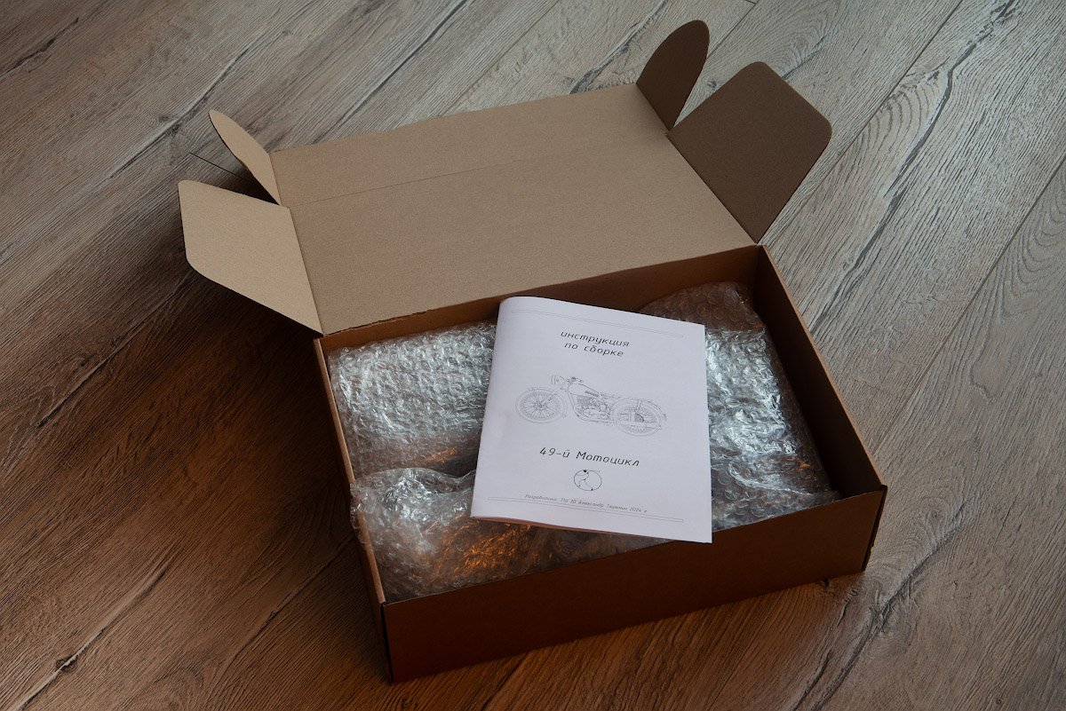Популярный пост Николай_ 5835 Опубликовано 1 Jul 2025, 09:10:03 Популярный пост Жалоба Поделиться Опубликовано 1 Jul 2025, 09:10:03 (изменено) Всем привет! Не стану откладывать в долгий ящик, как и обещал, параллельно Легенде начну тоже снова опять про мотоцикл. Не так давно на просторах интернета, а точнее на каропке, увидел весьма качественную модель мотоцикла ИЖ-49 в исполнении Сергея Андрияшина. Нечасто в наших краях появляются модели советских (ну почти) мотоциклов, да еще и в хорошем 12-масштабе. Копнув глубже, нашел автора модели, Александра (Tiu 3D), который оказался дизайнером из Иркутска и, связавшись с ним, приобрел для ознакомления такой же набор, но только в еще более хорошем — 9-масштабе. Тем самым, во-первых, устроил себе отпуск после очередной Гунзы, а во-вторых, надо же когда-то потрогать этот размерчик в преддверии освоения МФХ. Набор приехал в виде выращенных на 3Д-принтере деталей, надежно упакованных в пупырчатую пленку в добротной коробке внушительного размера. Деталей оказалось немного, и да, они огромные, еще лист с инструкцией. В таком масштабе уже видно абсолютно все, включая головки болтов, гайки и даже пуклёвки, прости господи. На отделение от поддержек в неспешном режиме ушла примерно неделя, после чего модель собралась практически сама, местами даже без клея. Конструкция продумана очень изящно, я такого не встречал, мотоцикл получается очень симпатичный, но ощущения неоднозначные. Это, конечно, не модель, в классическом понимании, это, скорее, конструктор, да и печать грубовата для такого размера. Много ступенек, до которых не подлезть, чтобы как-то их обработать. Хотя при должном умении пользоваться красками/кисточками, можно получить вполне смотрибельный поживший экземпляр, что собственно Сергей всем и продемонстрировал. Но с другой стороны качество и скрупулезность проработки деталей и узлов этого «конструктора» оказались настолько потрясающими, что, вновь связавшись с автором, мне удалось уговорить его попробовать другой метод сборки. Сквозь это мне доверили кое-какие файлы для изучения, потрошения и расчленения всего мотоцикла на отдельные составляющие. Тут, скажу я вам, есть, где порезвиться и оторваться: проработка на уровне регулировочных винтов карбюратора и стяжных скоб на хомутах. Есть даже проводка к заднему габариту, не говоря уже о рифленых рукоятках руля и сидений, покрышек с маркировкой. В общем, есть абсолютно всё, весь крепеж, но это всё выполнено в БТТ-шных традициях и подготовлено для выращивания практически одной деталью. Больше месяца ушло на расчленение и перепечатывание набора, и, наконец, можно приступать к сборке, которая в этом масштабе обещает доставить одно сплошное удовольствие. Изменено 1 Jul 2025, 09:17:50 пользователем Николай_ 15 Ссылка на сообщение Поделиться на другие сайты