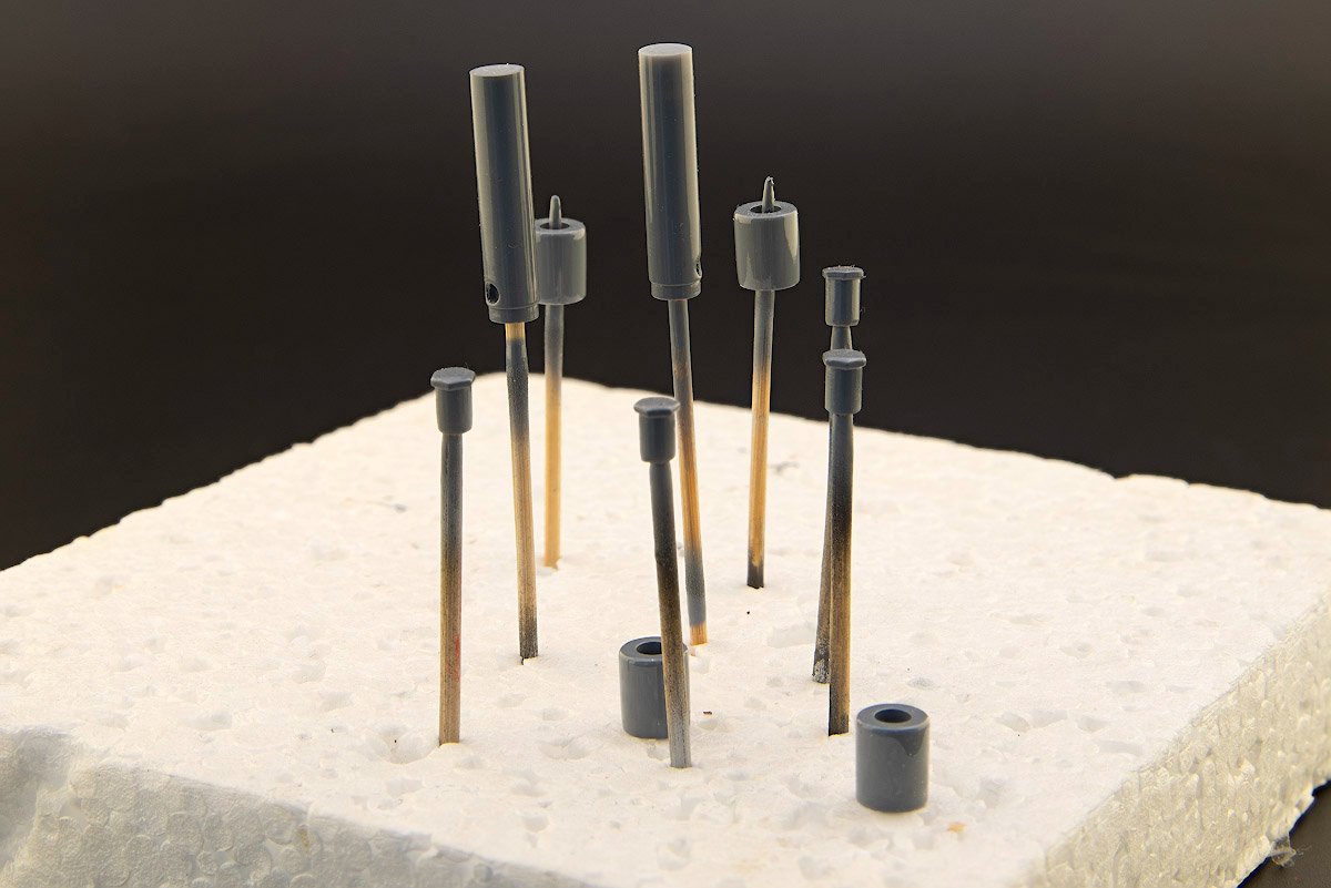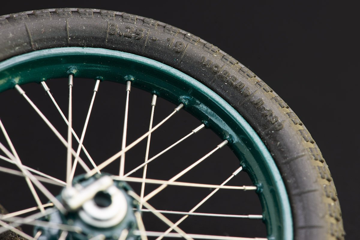 Популярный пост Николай_ 5835 Опубликовано 3 Jul 2025, 05:32:20 Автор Популярный пост Жалоба Поделиться Опубликовано 3 Jul 2025, 05:32:20 (изменено) Сегодня, собственно, по самой сборке бубнёж. Начал я все это хозяйство с колес, как с наиболее понятной детали, которую и сам не раз делал. По договоренности с Александром мне пришли две пары ободов, обе без спиц, но на одной были отлиты спицевые ниппели. Также в комплекте были покрышки, тоже отлитые из стандартной смолы. Версия с ниппелями мне не подошла, слишком грубо выглядит, а в ободе без них не совпали диаметры отверстий под трубочки, имитирующие спицевые гайки, поэтому напечатал свои ободы и заодно незатейливый стапель для сборки. Как видно на ободе имеются пуклёвки — выштамповки под головки ниппелей, к вопросу о скрупулезности проработки модели. Отверстия в ободе 0,9 мм для трубочек из иголок от шприцев калибра 22G (0,7 мм), после грунта, краски и лака, как раз подошли. Сами спицы — лечебные иглы 0,4 мм для протыкания людей, купленные на Али. Оздоровительный эффект от протыкания ощутил на себе пока спицевал колеса, подтверждаю. Далее долгие эксперименты с шинами. Шины, как писал выше, были в наборе, но из-за разницы в размерах, которая получились при печати ободов, они оказались не совсем в размер, были заметны щели. Комплектные обода и покрышки садятся абсолютно четко, безо всяких зазоров. Пара итераций с домашней печатью привели к удовлетворительному результату, но не оставляла в покое мысль об эксперименте с эластичной смолой. Что сказать, она, собака, дорогая, а килограммовой бутылки в хозяйстве точно не нужно, нет столько колес. Flexible смол на Озоне было две или три, но выбор лег на FX60 за ее малый вес, малый вес, баночка всего 0,5 кг. Своеобразная жыжа, очень липкая, хрен ототрешь, отмывается ИПСом, но долго и самозабвенно. Файл cfg с установками для печати есть на сайте производителя, что очень выручило. После печати дает некислую усадку, которая выявляется только на следующий день, из-за незнания этой особенности пару экземпляров пришлось выбросить. Да и саму модель перед печатью надо уменьшить на пять-шесть процентов, я это делал непосредственно в Читубоксе. Форму готовое и высушенное изделие держит с неохотой, поэтому саму модель пришлось допилить, заполнив внутреннюю полость в покрышке. Это пошло во благо еще и потому, что смола слегка прозрачная и тонкостенные элементы не выглядят черными. В итоге получилось неплохо, хотя, конечно, некоторые ажурные детали слегка поплыли, особенно надписи на боковинах. Но глаз человеческий так устроен, что само наличие надписей, пусть неидеальных, его устраивает более, чем их полное отсутствие на идеально отлитой покрышке. Ну, это, если придираться, зато взамен шина на обод села просто прекрасно, с небольшим натягом, всё, как положено. Честно сказать, все эти "грехи" печати выглядят скорее, как естественный износ, а вот, что надо еще раз сделать, так это искупать их со щеткой в ИПСе, липнет к ним все за километр. Изменено 3 Jul 2025, 08:04:47 пользователем Николай_ 21 Ссылка на сообщение Поделиться на другие сайты