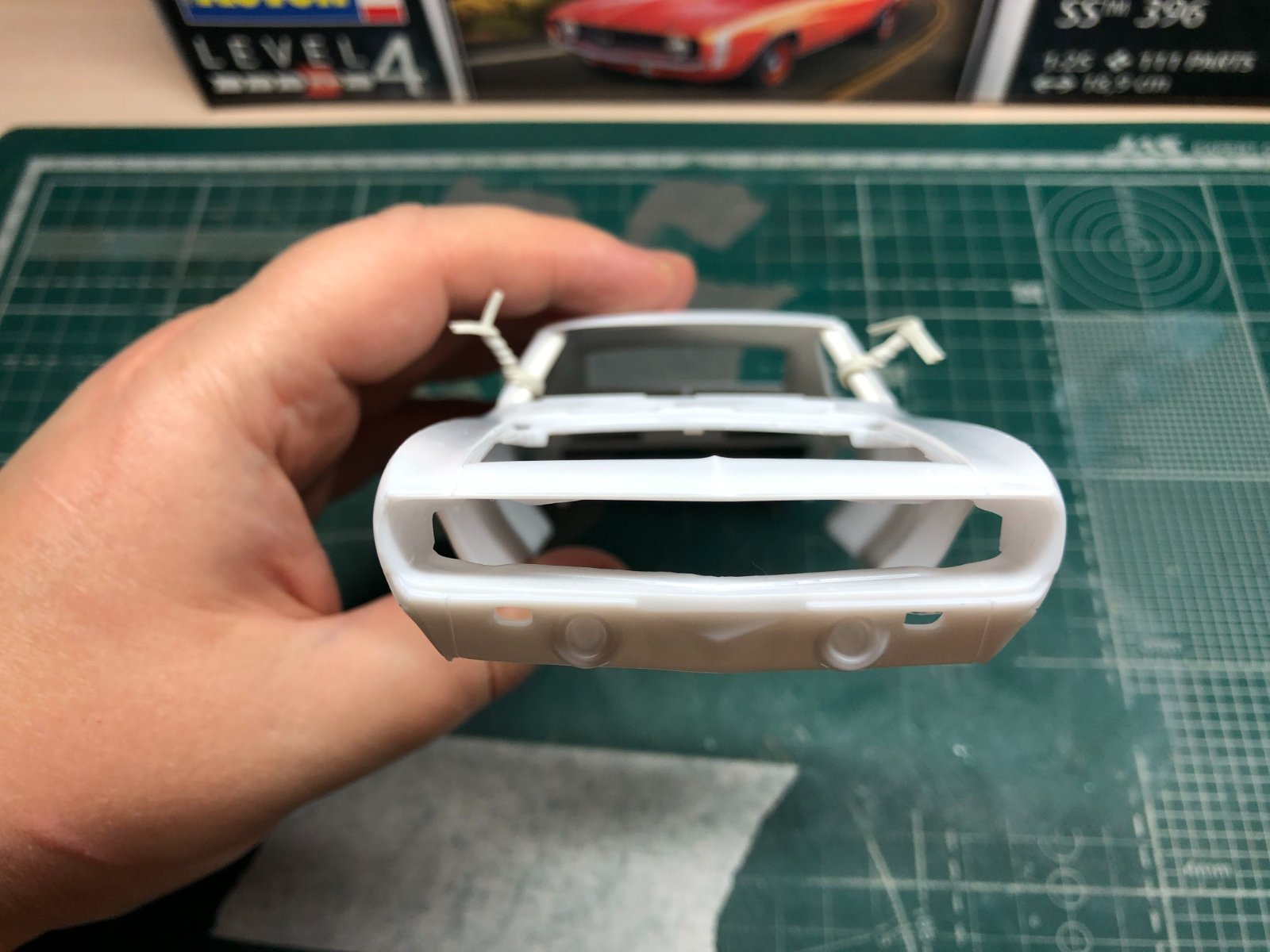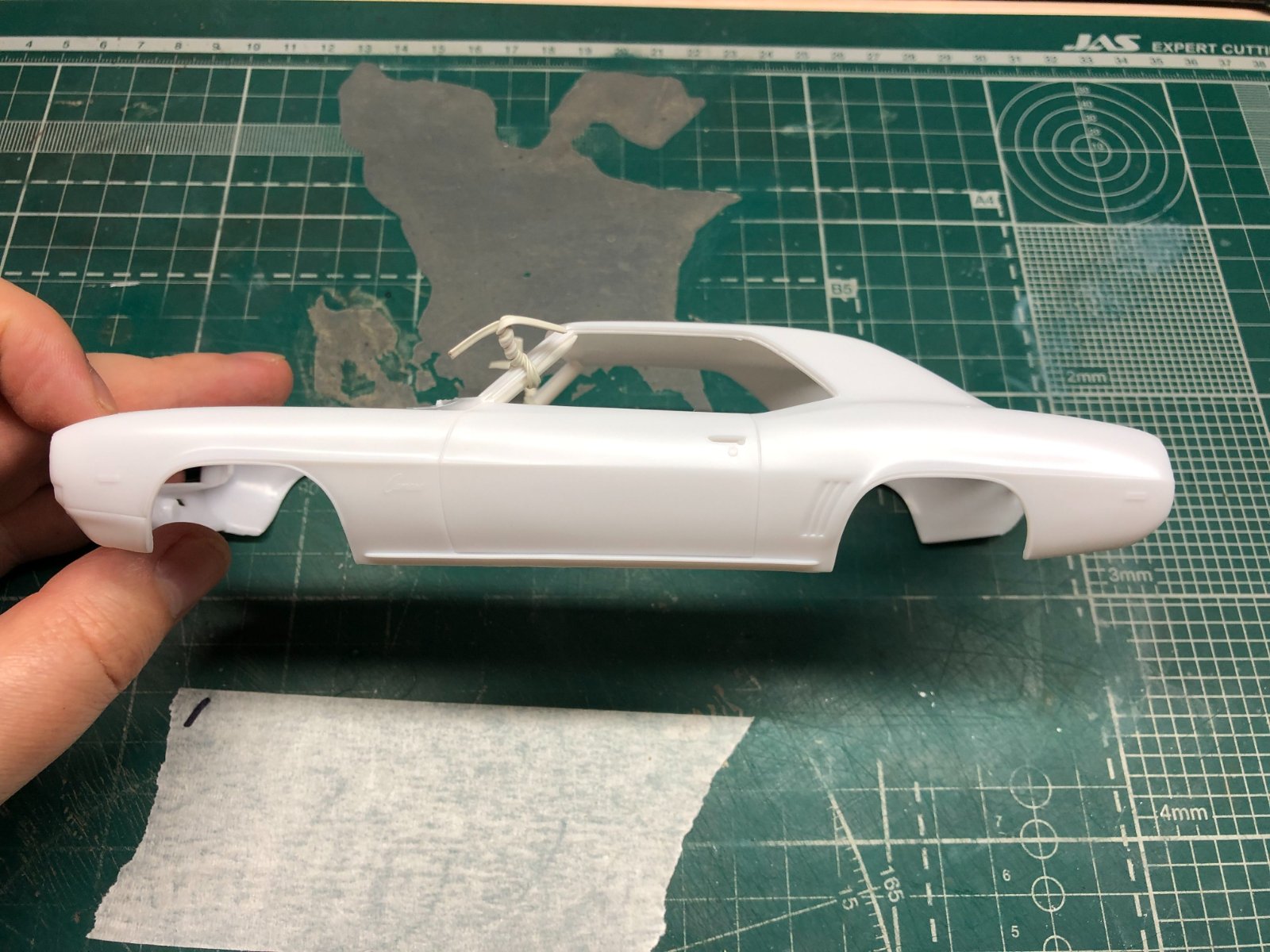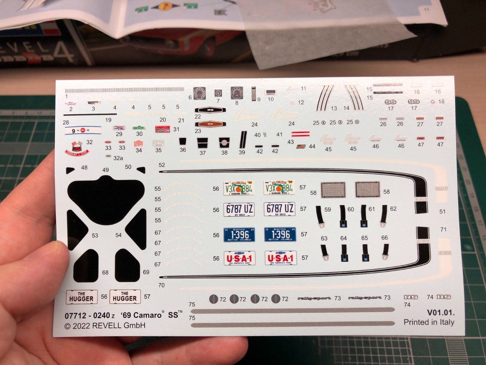 Популярный пост cuba_13 3529 Опубликовано 27 Jul 2025, 11:34:10 Популярный пост Жалоба Поделиться Опубликовано 27 Jul 2025, 11:34:10 Вы просили WIP'ов. Их есть у меня. Получив на юбилей заветную коробочку, сразу начал её спереди всех остальных запланированных строек. Считаю Camaro 1967-1969 один из самых красивых маскл-каров эвар. Как только Revell выпустил это издание - SS 396 (в нём новых деталей - капот и жабры на капоте) - понял, что хочу построить эту красоту. Начинаем обзор по классике с коробки и литников. Прошу прощения за засветы на некоторых фото. Вот такая красивая короробочка немецкого Revell. Декали. Забавный момент. В моём немецком издании надписи на шинах даны декалями. В американском же издании они сразу нанесены на шины и там отсутствуют декали для термошубы с внутренней стороны капота. Кузов, в моём случае, пришел с погнутыми стойками. На время работ с остальными деталями, я привязал с внутренней стороны кузова литники к проволоке максимально сильно. Будем надеяться, что обойдусь без правки в горячей воде. Шильдик Camaro дан с очень большим отступом (для богомерзкого "утиного хвоста", который я естественно ставить не буду), поэтому будет зашлифован и заменён на декаль. Трдиционно даны фонари для SS и RS версий. На литнике хрома также дана решетка морды для RS версии. А также приятным бонусом идут дверные ручки. Вообще странно их наличие, т.к. ручки отлиты на кузове. Но мне такое даже в плюс, не придётся брать смоляные из запасов. Инструкцию фоткать не стал, кому интересно, вот она:https://www.scalemates.com/products/img/6/4/6/1415646-69-instructions.pdf Мы с одним из двух моих помощников начали подготавливать детальки к грунтовочно покрасочным работам. Знакомьтесь - профессор. Я всегда обрабатываю и дорабатываю детали строго в том порядке, как они идут в инструкции. Со всех хромовых деталей я зхром снял, т.к. они нуждаются в обработке, покрою потом Алкладом. Вот, как видит выпускной коллектор Revell. Залил смолой, которая застывает под ультрафиолетом. Люблю ей заделывать что-либо, т.к. застывает за полминуты под фонариком. Она прозрачная, поэтому может быть не особо видно. Все детальки двигателя готовы, все необходимые отверстия высверлены и я готов к следующей партии деталек. Вообще, мне не совсем понятна логика Revell в плане выпускного коллектора, я просмотрел обзоры/инструкции ко всем 1969-м Camaro во всех возможных вариациях и везде коллекторы именно такие. Стоковых вот такого типа: ни в одном наборе нет. На этом пока всё. Спасибо за внимание. 9 Ссылка на сообщение Поделиться на другие сайты