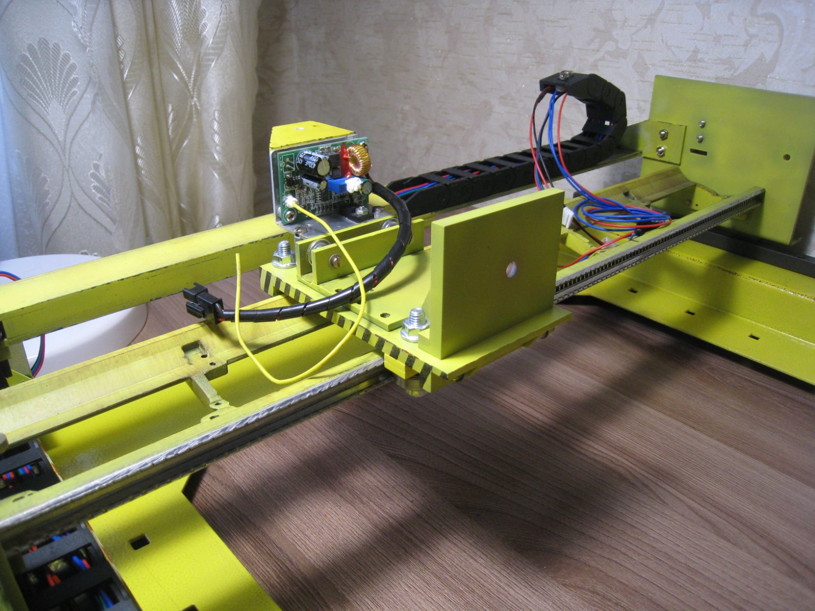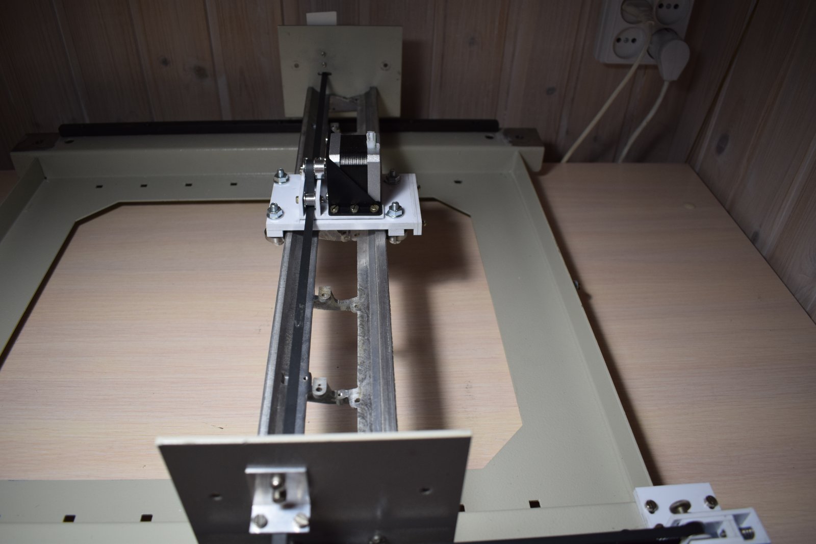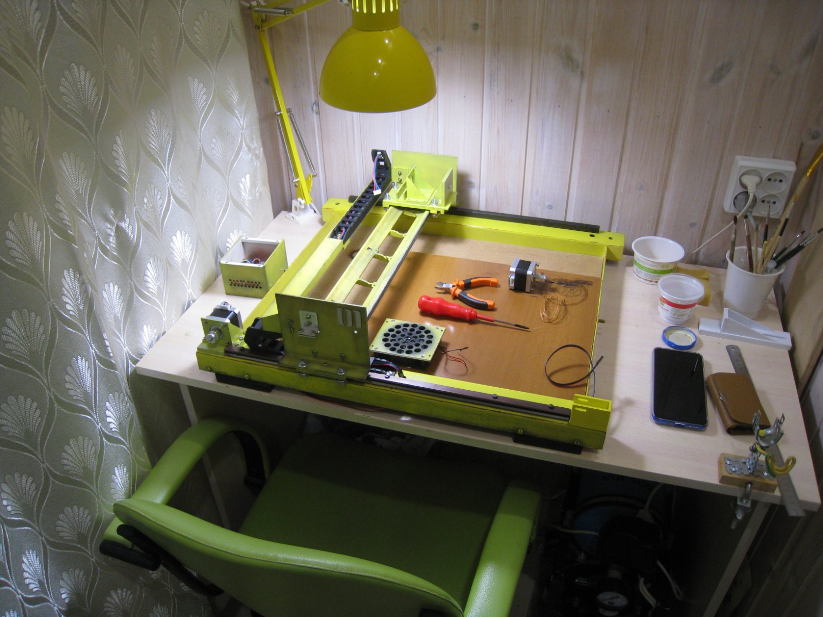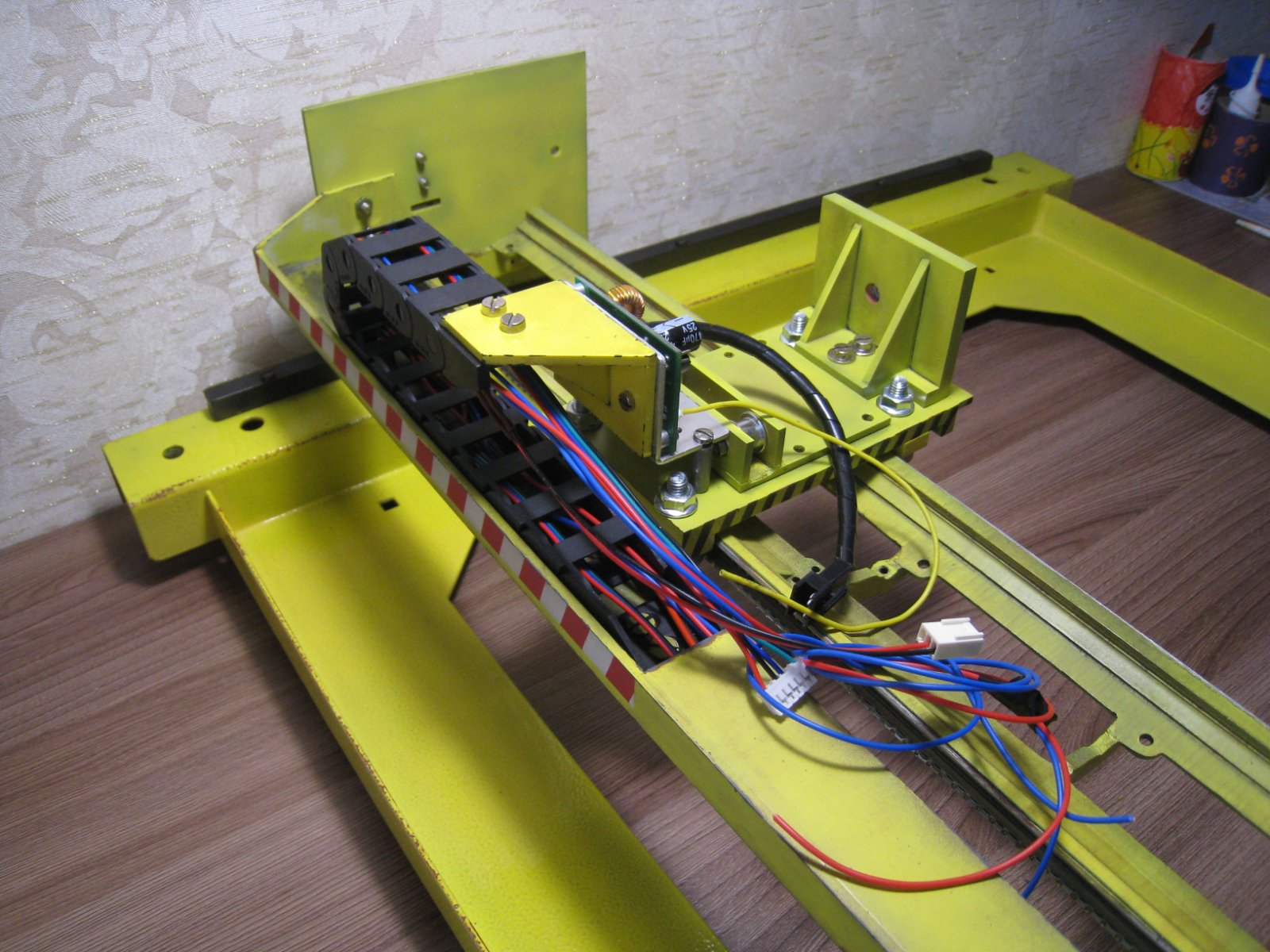 Популярный пост vof4eg 426 Опубликовано 9 Feb 2026, 18:04:50 Популярный пост Жалоба Поделиться Опубликовано 9 Feb 2026, 18:04:50 (изменено) Приветствую уважаемые читатели, давно хотел, и вот решился таки, написать статью-обзор на лазерный гравер который я сделал своими руками. К написанию этой статьи подвиг меня Олег billabong73 в личной переписке, давний мой приятель по бумажному моделизму. Для "бумажного" моделиста лазерная резка сродни 3д печати для "пластикового". И поэтому, как любитель пластикового моделизма мечтает о домашнем 3д-принтере, так "бумажник" мечтает о возможности лазером вырезать детали из картона у себя дома. И тут я не стал исключением. В наше время конечно можно запросто купить готовый станок, но во первых это не интересно, а во вторых, более или менее достойные варианты совсем не дёшевы, а бюджетные граверы не отличаются качеством и надежностью. Так что было принято решение делать лазерный гравер своими руками! Итак, перво-наперво нам понадобится рама-основание самого станка, долго я думал из чего же её сделать, как правило в этих целях используется конструкционный алюминиевый профиль (кажется так он называется), кто-то берет просто кусок фанеры или доски или кухонной столешницы на худой конец. Но так как я работаю в сфере телекоммуникаций, на глаза мне попалось вот такое основание от какой-то стойки. Примерно вот так она выглядела изначально Из чего делать подвижные части кареток оси Х и оси У, я подглядел на канале "Мне интересно", там один мужичек делает замечательные самоделки из различного чермета, и вот в качестве аналогичных подвижных частей, он здорово использует каретки от пишущих машинок. Приобрел пару таких машинок по случаю на Авито, разобрал. К сожалению сфоткать забыл. На фото ниже первая примерка и обдумывание дальнейшей компоновки, тестовая каретка оси Х (затем изготовил другую), боковые стенки (алюминиевые уголки) тоже нашел на работе, между ними прикручена каретка от машинки. На основание приложены "рельсы" от той же машинки. Вторая версия каретки оси Х. Ролики заказывал на алиэкспрессе, Подшипники крепятся при помощи болтов с внутренним шестигранником, два из которых через подвижную планку, для возможности регулировки (выбирать люфты винтами). Мотор шаговый Нема-17 уголок-кронштейн покупной. Управление планировалось на основе платы ардуино Уно и платы расширения Шилд, или как-то так, не помню уже точно, с драйверами шаговых двигателей. Так же заказывал комплектом на алиэкспресс. Но тут меня ждал неприятный сюрприз, но об этом позже. Голову лазера 2,8Вт, купил в профильной группе VK, их делает один парень на заказ, но купил бу по объявлению в той же группе. Под электронику склеил корпус, предусмотрел охлаждение Далее фото уже готового шасси. Механизм натяжения ремней оси У, натяжение происходит при помощи подпружиненного винтика, затягивается барашком. Под моторчик оси У пришлось сделать площадку, что бы его немного приподнять. Скоба натяжения оси Х - уголок с пластиночкой с прорезью под зубья ремня снизу. Кабель-канал, продолжение пластикового покупного кабелеукладчика. Первый вариант крепления головы к каретке с возможностью регулировки высоты, он был не плох, но подглядел в профильной группе, что для настройки фокусного расстояния используют специальную фото-приблуду, заказал такую, честно сказать был от неё не в восто
