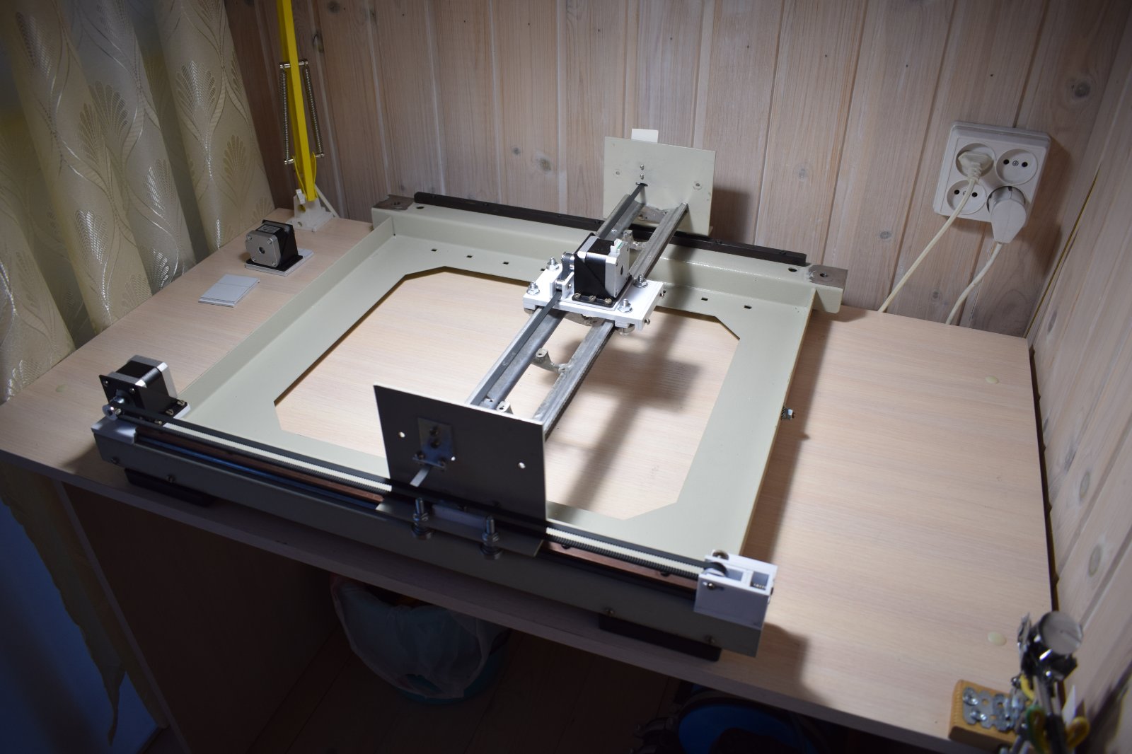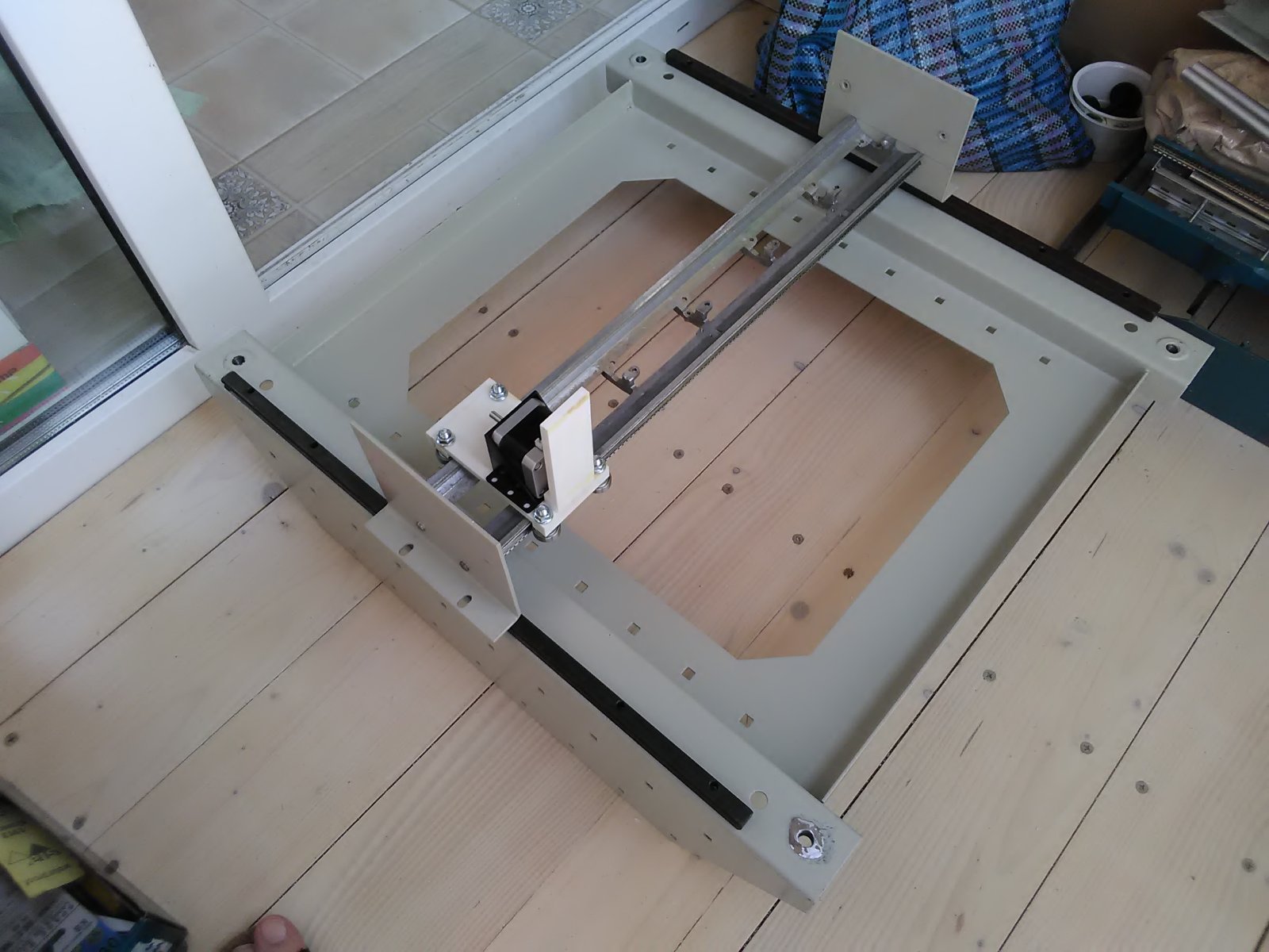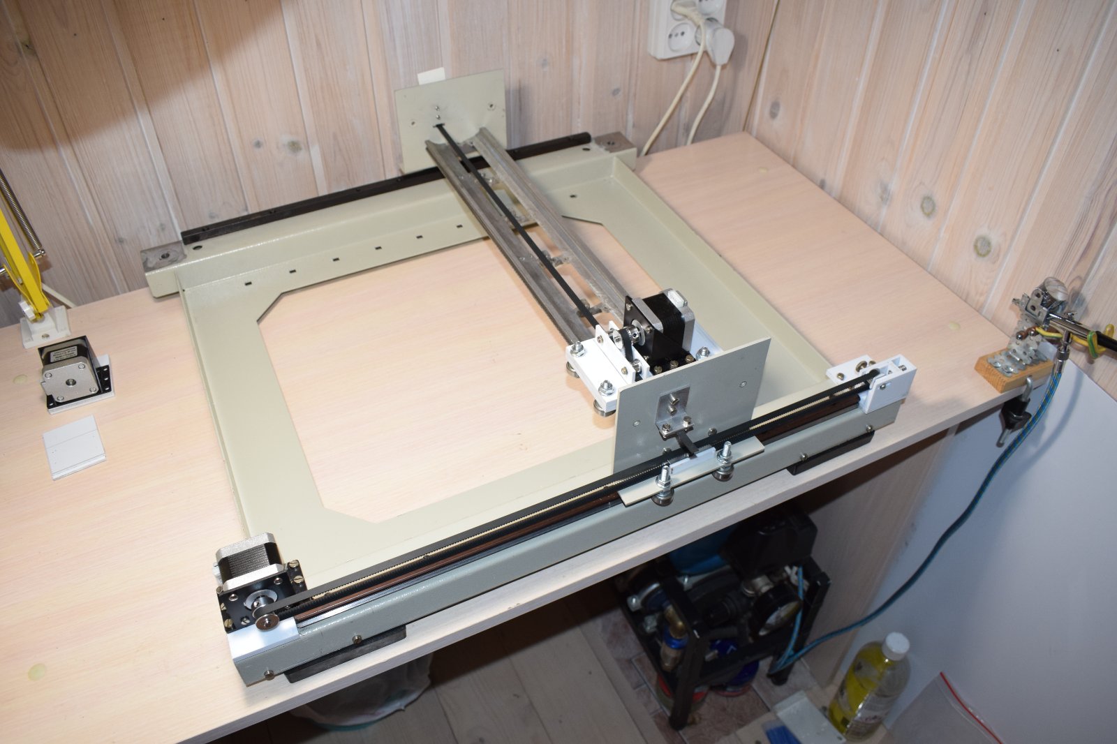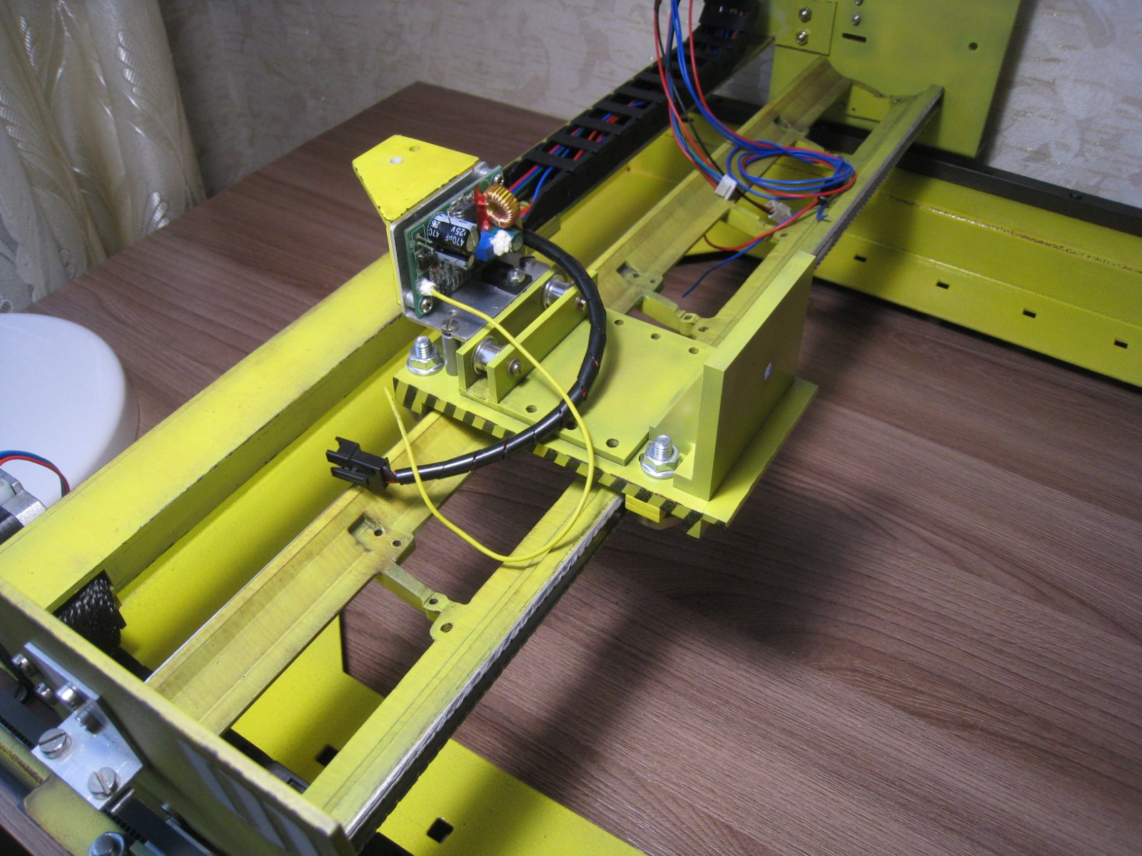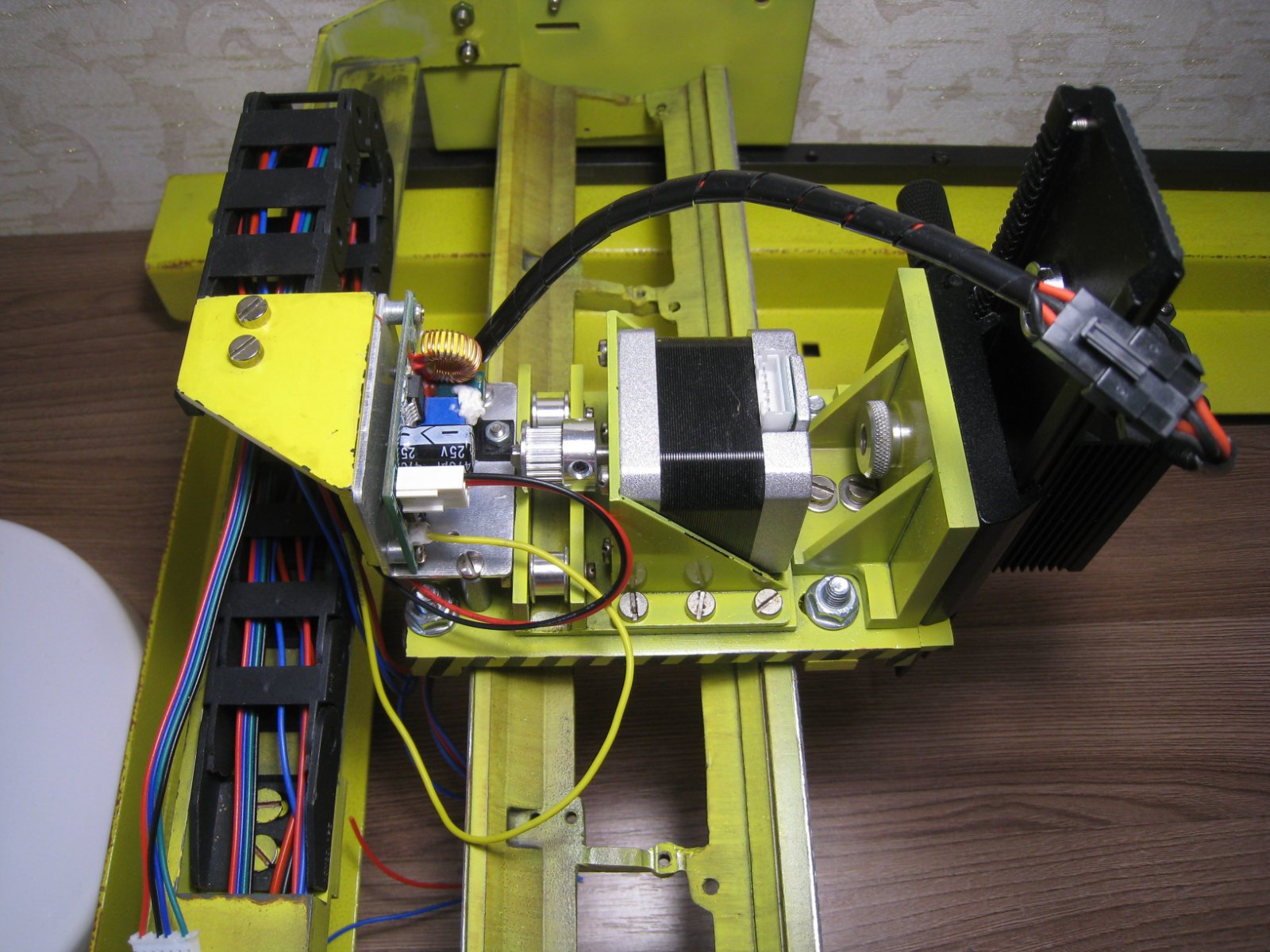 Популярный пост vof4eg 426 Опубликовано 9 Feb 2026, 18:04:50 Популярный пост Жалоба Поделиться Опубликовано 9 Feb 2026, 18:04:50 (изменено) Приветствую уважаемые читатели, давно хотел, и вот решился таки, написать статью-обзор на лазерный гравер который я сделал своими руками. К написанию этой статьи подвиг меня Олег billabong73 в личной переписке, давний мой приятель по бумажному моделизму. Для "бумажного" моделиста лазерная резка сродни 3д печати для "пластикового". И поэтому, как любитель пластикового моделизма мечтает о домашнем 3д-принтере, так "бумажник" мечтает о возможности лазером вырезать детали из картона у себя дома. И тут я не стал исключением. В наше время конечно можно запросто купить готовый станок, но во первых это не интересно, а во вторых, более или менее достойные варианты совсем не дёшевы, а бюджетные граверы не отличаются качеством и надежностью. Так что было принято решение делать лазерный гравер своими руками! Итак, перво-наперво нам понадобится рама-основание самого станка, долго я думал из чего же её сделать, как правило в этих целях используется конструкционный алюминиевый профиль (кажется так он называется), кто-то берет просто кусок фанеры или доски или кухонной столешницы на худой конец. Но так как я работаю в сфере телекоммуникаций, на глаза мне попалось вот такое основание от какой-то стойки. Примерно вот так она выглядела изначально Из чего делать подвижные части кареток оси Х и оси У, я подглядел на канале "Мне интересно", там один мужичек делает замечательные самоделки из различного чермета, и вот в качестве аналогичных подвижных частей, он здорово использует каретки от пишущих машинок. Приобрел пару таких машинок по случаю на Авито, разобрал. К сожалению сфоткать забыл. На фото ниже первая примерка и обдумывание дальнейшей компоновки, тестовая каретка оси Х (затем изготовил другую), боковые стенки (алюминиевые уголки) тоже нашел на работе, между ними прикручена каретка от машинки. На основание приложены "рельсы" от той же машинки. Вторая версия каретки оси Х. Ролики заказывал на алиэкспрессе, Подшипники крепятся при помощи болтов с внутренним шестигранником, два из которых через подвижную планку, для возможности регулировки (выбирать люфты винтами). Мотор шаговый Нема-17 уголок-кронштейн покупной. Управление планировалось на основе платы ардуино Уно и платы расширения Шилд, или как-то так, не помню уже точно, с драйверами шаговых двигателей. Так же заказывал комплектом на алиэкспресс. Но тут меня ждал неприятный сюрприз, но об этом позже. Голову лазера 2,8Вт, купил в профильной группе VK, их делает один парень на заказ, но купил бу по объявлению в той же группе. Под электронику склеил корпус, предусмотрел охлаждение Далее фото уже готового шасси. Механизм натяжения ремней оси У, натяжение происходит при помощи подпружиненного винтика, затягивается барашком. Под моторчик оси У пришлось сделать площадку, что бы его немного приподнять. Скоба натяжения оси Х - уголок с пластиночкой с прорезью под зубья ремня снизу. Кабель-канал, продолжение пластикового покупного кабелеукладчика. Первый вариант крепления головы к каретке с возможностью регулировки высоты, он был не плох, но подглядел в профильной группе, что для настройки фокусного расстояния используют специальную фото-приблуду, заказал такую, честно сказать был от неё не в восто