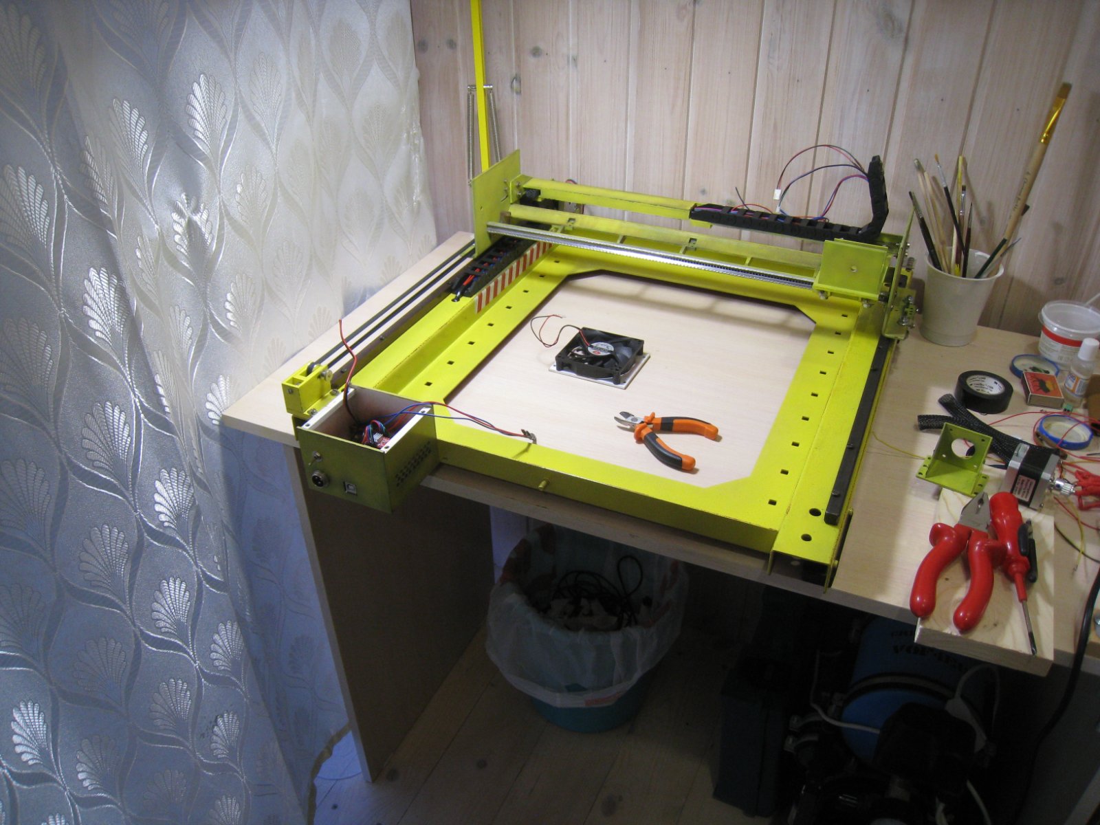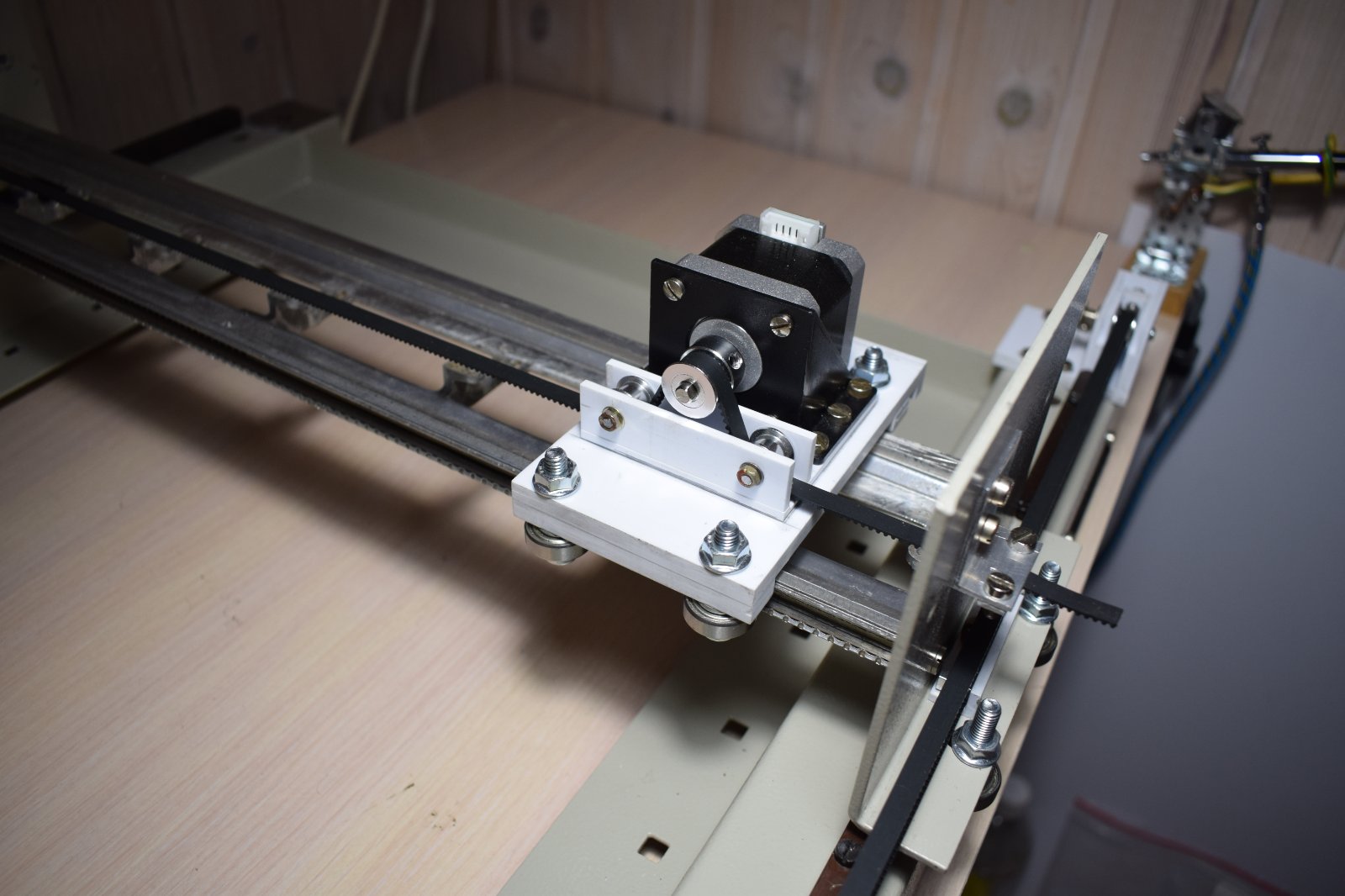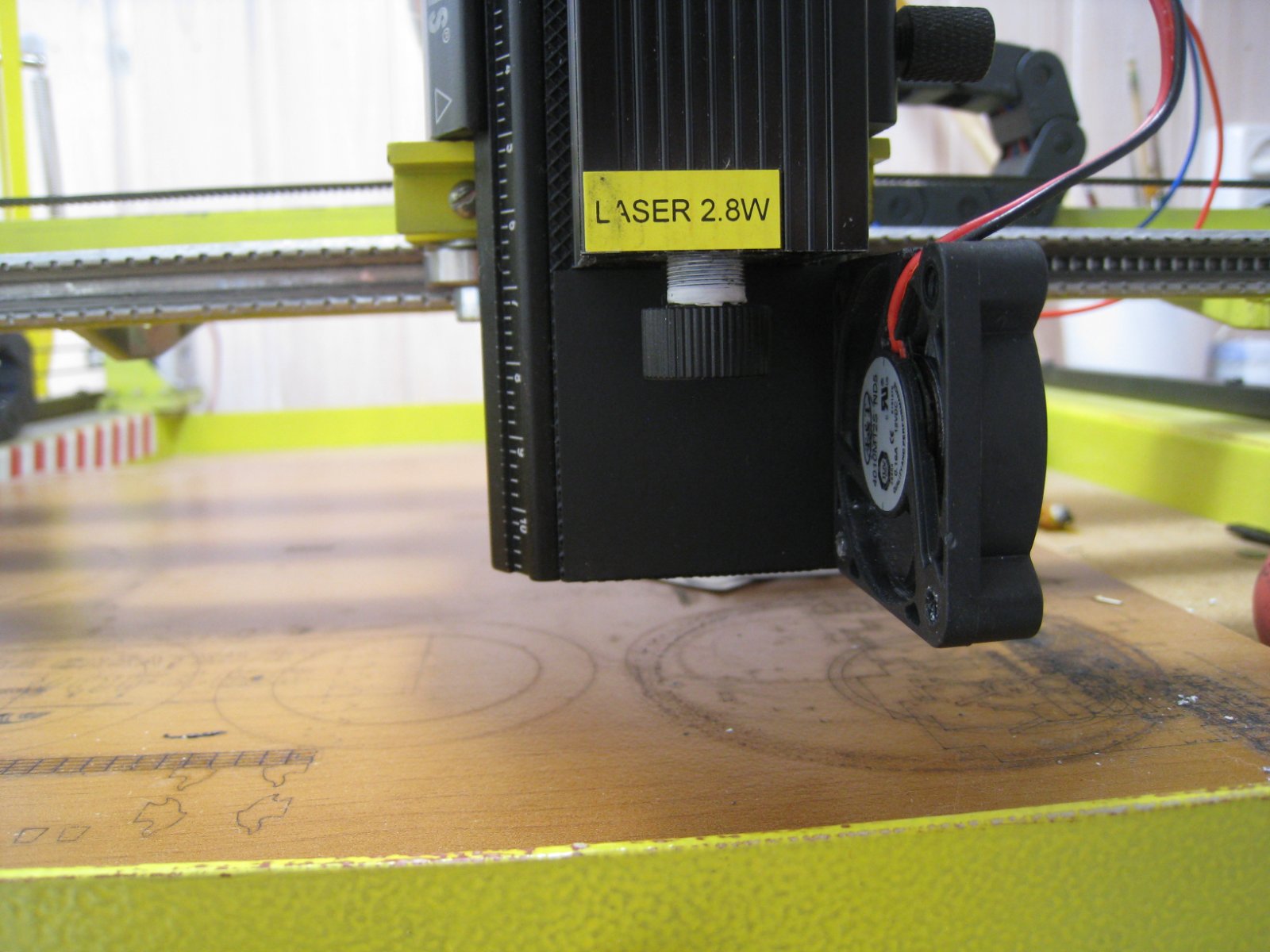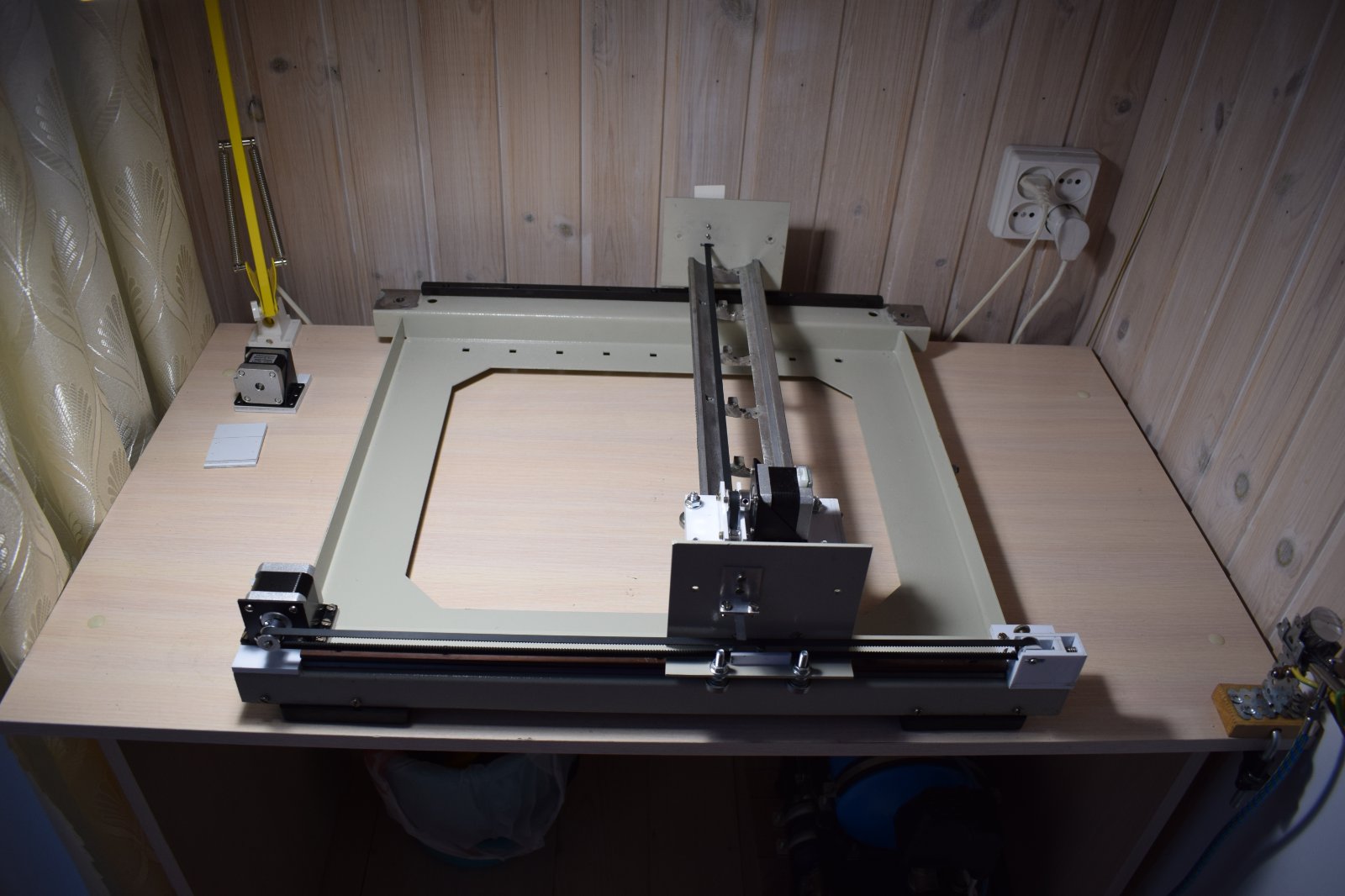 Популярный пост vof4eg 426 Опубликовано 9 Feb 2026, 18:04:50 Популярный пост Жалоба Поделиться Опубликовано 9 Feb 2026, 18:04:50 (изменено) Приветствую уважаемые читатели, давно хотел, и вот решился таки, написать статью-обзор на лазерный гравер который я сделал своими руками. К написанию этой статьи подвиг меня Олег billabong73 в личной переписке, давний мой приятель по бумажному моделизму. Для "бумажного" моделиста лазерная резка сродни 3д печати для "пластикового". И поэтому, как любитель пластикового моделизма мечтает о домашнем 3д-принтере, так "бумажник" мечтает о возможности лазером вырезать детали из картона у себя дома. И тут я не стал исключением. В наше время конечно можно запросто купить готовый станок, но во первых это не интересно, а во вторых, более или менее достойные варианты совсем не дёшевы, а бюджетные граверы не отличаются качеством и надежностью. Так что было принято решение делать лазерный гравер своими руками! Итак, перво-наперво нам понадобится рама-основание самого станка, долго я думал из чего же её сделать, как правило в этих целях используется конструкционный алюминиевый профиль (кажется так он называется), кто-то берет просто кусок фанеры или доски или кухонной столешницы на худой конец. Но так как я работаю в сфере телекоммуникаций, на глаза мне попалось вот такое основание от какой-то стойки. Примерно вот так она выглядела изначально Из чего делать подвижные части кареток оси Х и оси У, я подглядел на канале "Мне интересно", там один мужичек делает замечательные самоделки из различного чермета, и вот в качестве аналогичных подвижных частей, он здорово использует каретки от пишущих машинок. Приобрел пару таких машинок по случаю на Авито, разобрал. К сожалению сфоткать забыл. На фото ниже первая примерка и обдумывание дальнейшей компоновки, тестовая каретка оси Х (затем изготовил другую), боковые стенки (алюминиевые уголки) тоже нашел на работе, между ними прикручена каретка от машинки. На основание приложены "рельсы" от той же машинки. Вторая версия каретки оси Х. Ролики заказывал на алиэкспрессе, Подшипники крепятся при помощи болтов с внутренним шестигранником, два из которых через подвижную планку, для возможности регулировки (выбирать люфты винтами). Мотор шаговый Нема-17 уголок-кронштейн покупной. Управление планировалось на основе платы ардуино Уно и платы расширения Шилд, или как-то так, не помню уже точно, с драйверами шаговых двигателей. Так же заказывал комплектом на алиэкспресс. Но тут меня ждал неприятный сюрприз, но об этом позже. Голову лазера 2,8Вт, купил в профильной группе VK, их делает один парень на заказ, но купил бу по объявлению в той же группе. Под электронику склеил корпус, предусмотрел охлаждение Далее фото уже готового шасси. Механизм натяжения ремней оси У, натяжение происходит при помощи подпружиненного винтика, затягивается барашком. Под моторчик оси У пришлось сделать площадку, что бы его немного приподнять. Скоба натяжения оси Х - уголок с пластиночкой с прорезью под зубья ремня снизу. Кабель-канал, продолжение пластикового покупного кабелеукладчика. Первый вариант крепления головы к каретке с возможностью регулировки высоты, он был не плох, но подглядел в профильной группе, что для настройки фокусного расстояния используют специальную фото-приблуду, заказал такую, честно сказать был от неё не в восто