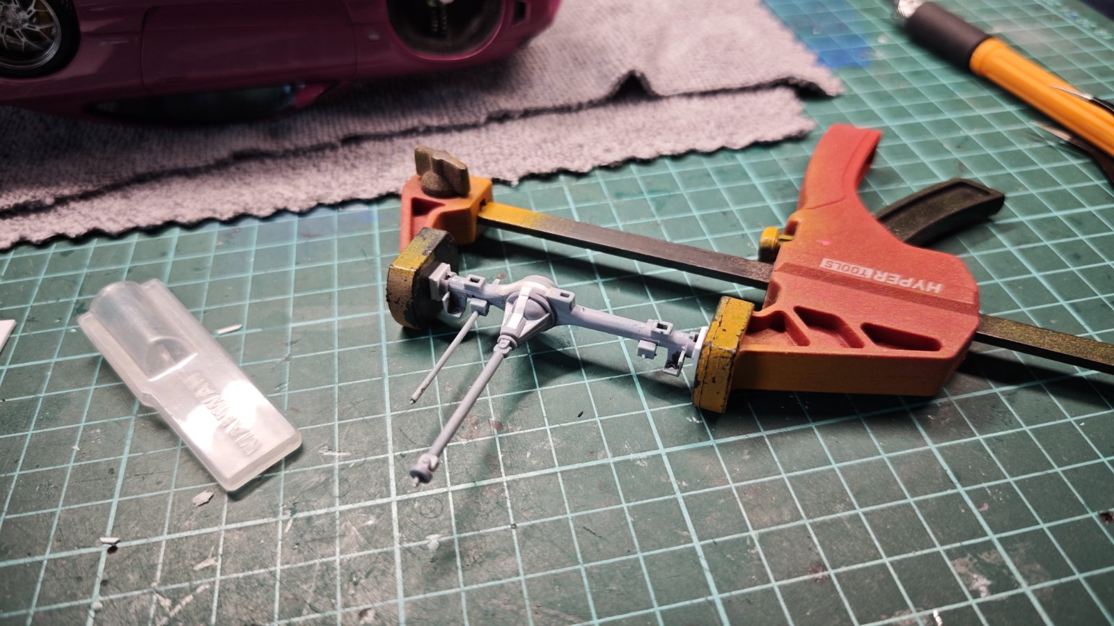 Skalnik 313 Опубликовано сегодня, 04:06:56 Жалоба Поделиться Опубликовано сегодня, 04:06:56 (изменено) Ну что, закончил сливу, надо бы закончить остальные, но... Начну еще один долгий ВИП, на этот раз по восстановлению модели Land Rover LH36D Range Rover Classic `92 от Aoshima (у меня очень много подобных полутрупов, не спрашивайте зачем :) ). Строить буду долго, т.к. много пилить, а приоритет надо всё же отдать M635 CSI и HCR32. Первый пост будет ознакомительно-планировочный, постараюсь в одном месте изложить план действия (для себя), возможно даже буду его потом соблюдать :) Значит достался он мне уже частично отмытый и не полностью разобран. Ходовка была окрашена и склеена суперклеем, местами криво. В ходе отмывки мелкие места конечно отломались, будем восстанавливать. Набор у меня лежит в закромах более года, что-то ковырял уже, на сегодняшний день он выглядит так (что-то еще в коробке/пакете валяется) Цвет планируется песочно-желтый. Из допов будет запаска, багажник на крышу, какой-то шмурдяк, расширители на кузов, возможно передний бампер из труб... По салону наверное сток будет. Как прообраз для постройки будут использоваться вот эти фотки: Штатные мелкие не красивые колеса будут заменены на Аошимовские 16" тазики Dytona AWC Steel, а резину я напечатал еще осенью под этот проект, размером 34мм, что примерно равно 32" в реальности. В целом это не большое увеличение относительно стоковых 29", так называемый, гражданский лифт. На фотках же у образцов как будто 33-35". В процессе еще посмотрю, может закажу по толще колеса. Муляж двигателя довольно страшный, а я сусликов люблю... Первая мысль - надо чем-то заменить. Интернет сказал, что ранние V8 у Ведровера, это лицензионный движок от General Motors (Buick 215 1961года). Взял для примерки двигатель от Сamaro Revell, но в 25м масштабе, мелковат как будто И вот в процессе обсуждения идеи с @vova26003 он мне напомнил про ходовку от GMC в моих запасах. Он как раз оказался в 24м масштабе, и движок по габаритам как раз как муляж у Аошимы. Конечно это не тот же двигатель, но как отправная точка для суслика - пойдёт. Немного поправлю поддон, перенесу фильтр вперёд, для похожести, может поправилю выпускные коллектора. Капот не хочу открывать, слишком много доработок это потянет за собой. Какие-то работы по набору начинались давно. Например на мостах сверху и на пневмоподушках были отверстия от литья, я их решил закрыть, т.к. планируется чуть лифтануть машину и есть шанс, что их будет видно. Вклеил пластик, срезал, шлифанул. Раму дочистил от клея, ужаснулся количеству утяжин с внутренней стороны. Замазал их шпатлей, позже шлифану. Самая беда с ходовкой - поворотные кулаки на переднем мосту были насмерть залиты супер клеем. Несколько дней в ИПСе не помогли, частично расколупал, но без потерь обойтись не удалось... В общем буду делать заново, скорее всего не на шаре, как было по инструкции, а на шкворнях. Поэтому начал с простого, с заднего моста. Примерил расширители, определился с общей шириной, начал собирать в кучу мост, тормоза и новые колёса. По ширине всё почти сошлось, но получился вид, как будто на ступицу прикрутили проставки +150мм, колёса сильно торчат, а тормозные диски оказались за границами этих самых колёс :) Решил пилить тормоза (у них был сильный вылет посадочной плоскости), диски же под Аошимовский стандарт, с поликапами в них. Самое простое было бы срезать выступ в дисках и прости приклеить